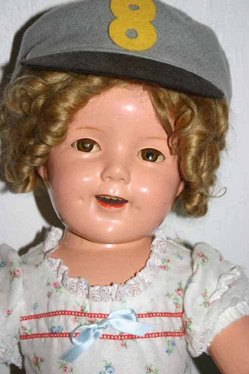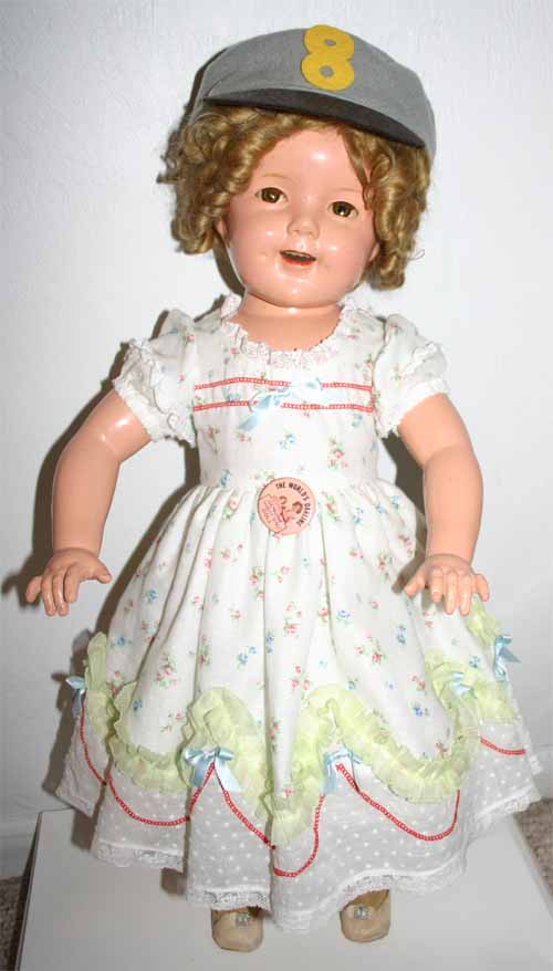 27" compo Shirley Temple doll from 1935. A pretty doll with clear eyes from the original owner. This doll is wearing a dress that I've always dreamed of having, the fancy Littlest Rebel dress, but it isn't original, a friend of mine who is a professional seamstress made this for me, and I have to say, the details are incredible, just as good as having the original and a lot better deal!